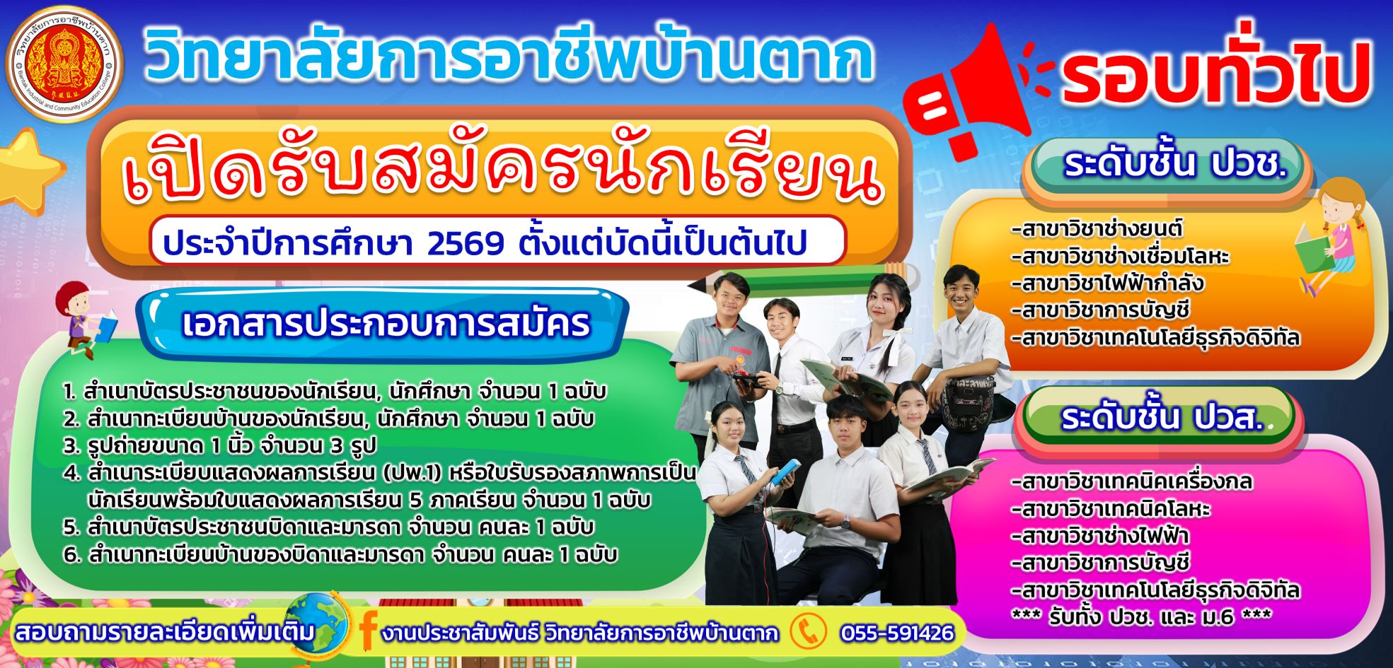 การรับสมัครนักเรียน นักศึกษา (รอบทั่วไป) ประจำปีการศึกษา 2569 ประกอบด้วย ![]()